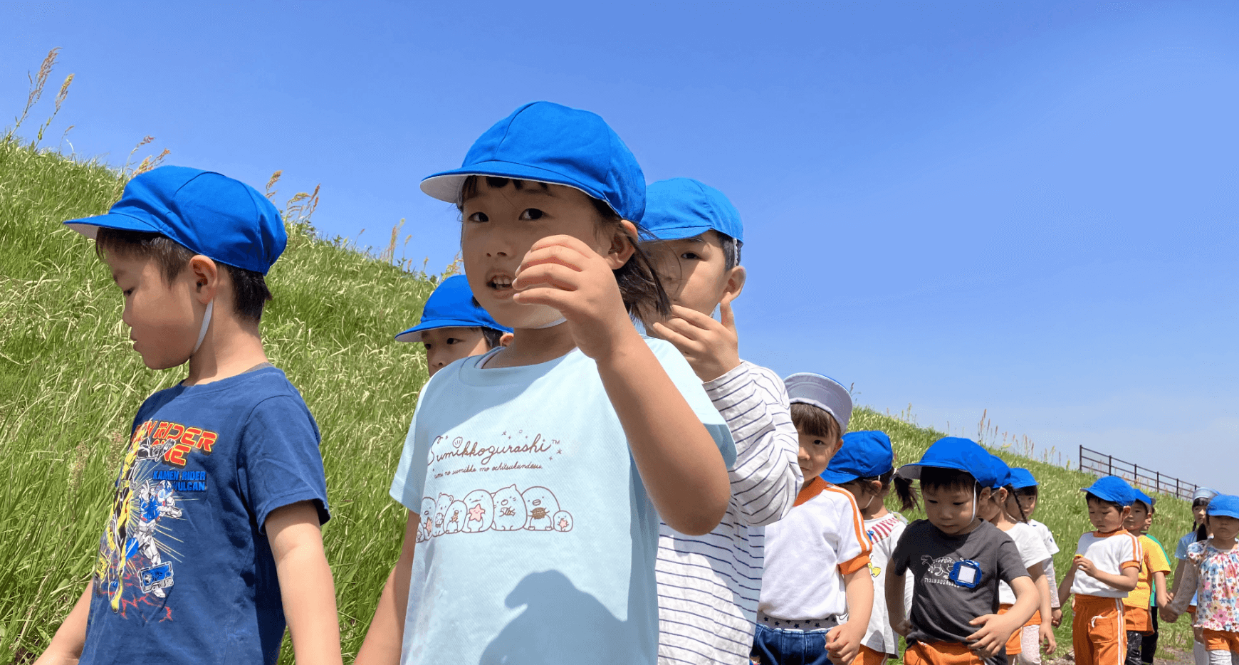 鼓笛を中心に音楽リズム、カード合わせ、詩の暗唱などを楽しく学びながら“できたこと”を喜び合える教育保育を展開しています。